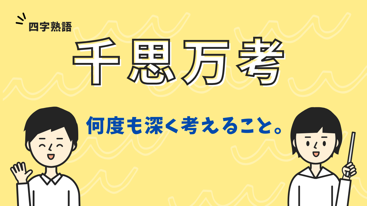 「千思万考」とは、「せんしばんこう」と読み、何度も深く考えること。という意味があります。
